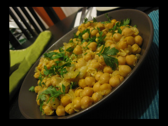 This dish gets high marks for ease of preparation and comfort food levels of taste. It was also fun to see Bacalhau Boy so shocked when he saw it on the table. It not only was the first proper meal he'd seen on that table for many weeks, it was also very different from what he knew bacalhau com grão to be. This was no cause for concern, though-- he scarfed down two big pieces of bacalhau, commenting on how tender it was. And he was right, the poaching brought out a delicate nature to the fish which you usually only get in fresh cod. The chickpeas were a great accompaniment, and if I say so myself, they were a grand improvement over their plain boiled cousins.